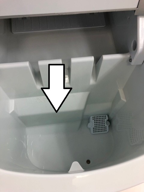 使用方法は水道水や純水を写真の矢印の部分まで入れて頂き、電源を入れるだけで10~15分でどんどん氷が出来上がっていきます。